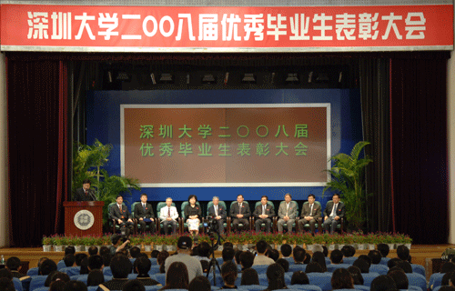 校黨委副書記陶士平宣讀了關(guān)于表彰深圳大學(xué)2008屆優(yōu)秀畢業(yè)生的決定,授予267名同學(xué)優(yōu)秀畢業(yè)生稱號(hào)。其中,優(yōu)秀本科畢業(yè)生有221人,優(yōu)秀畢業(yè)研究生有46人。