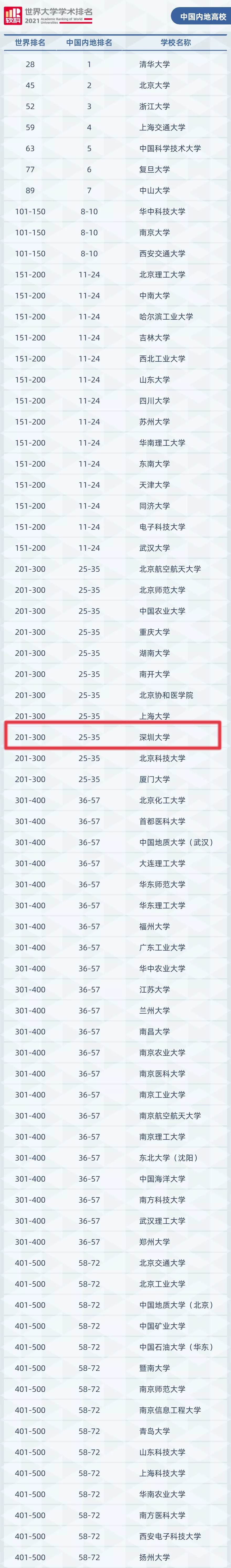 8月15日,軟科正式發布“2021軟科世界大學學術排名”。深圳大學再次位列世界前300,內地高校排名28,較去年進步3名,連續兩年成為唯一一所進入世界300強的非“雙一流”高校。