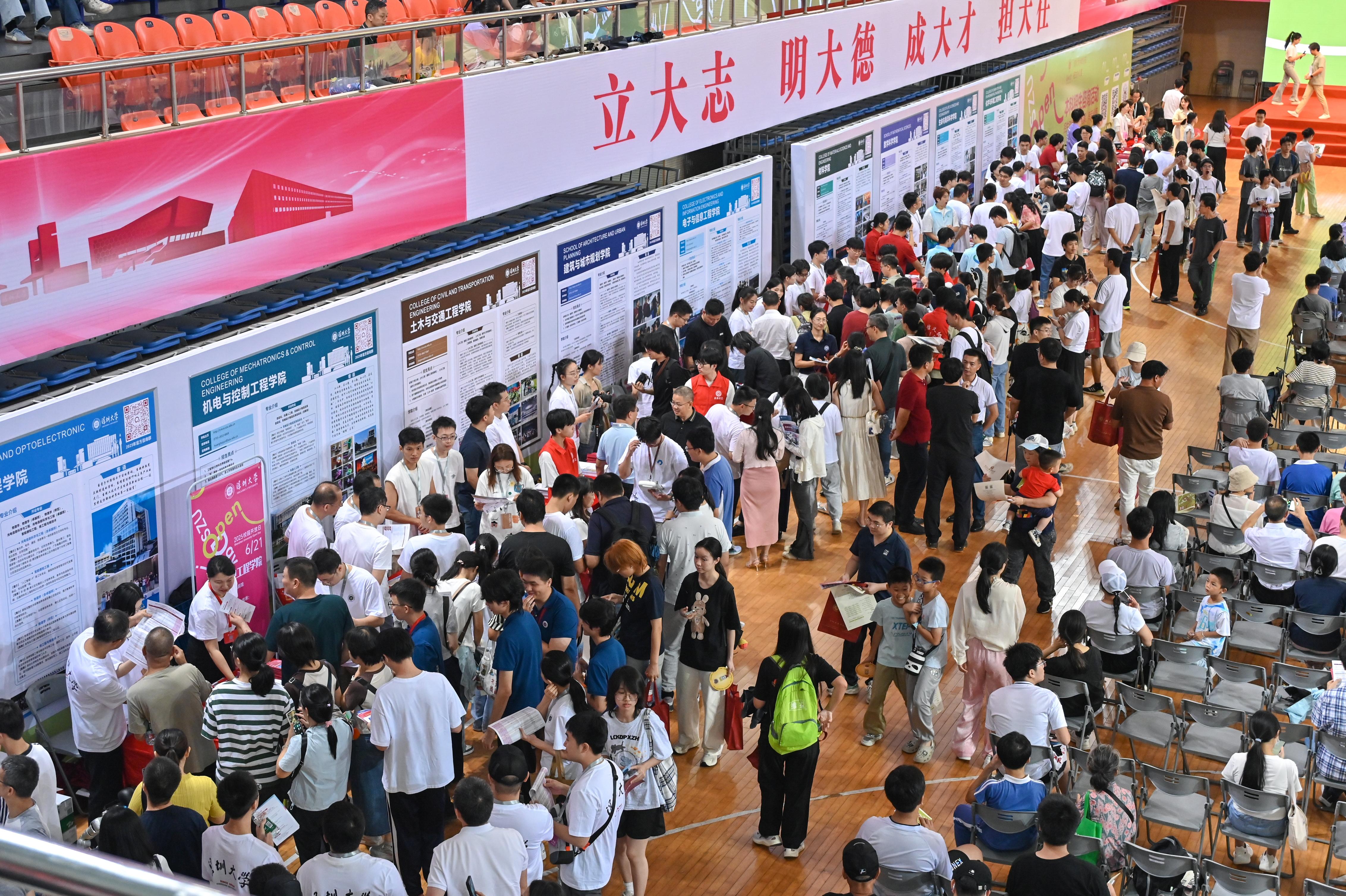 6月21日,深圳大學(xué)舉行“2025校園開放日”,活動吸引了數(shù)萬名考生、家長與市民來到粵海、麗湖兩校區(qū)探校。大家手持暢游地圖與專屬集章冊,全方位、沉浸式“打卡”體驗(yàn)深大日常,近距離感受校園風(fēng)采。